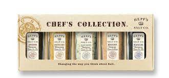 Applewood Smoked Sea Salt, Black Truffle Sea Salt, Himalayan Pink Sea Salt, Roasted Garlic Sea Salt, and Black Lava Sea Salt.